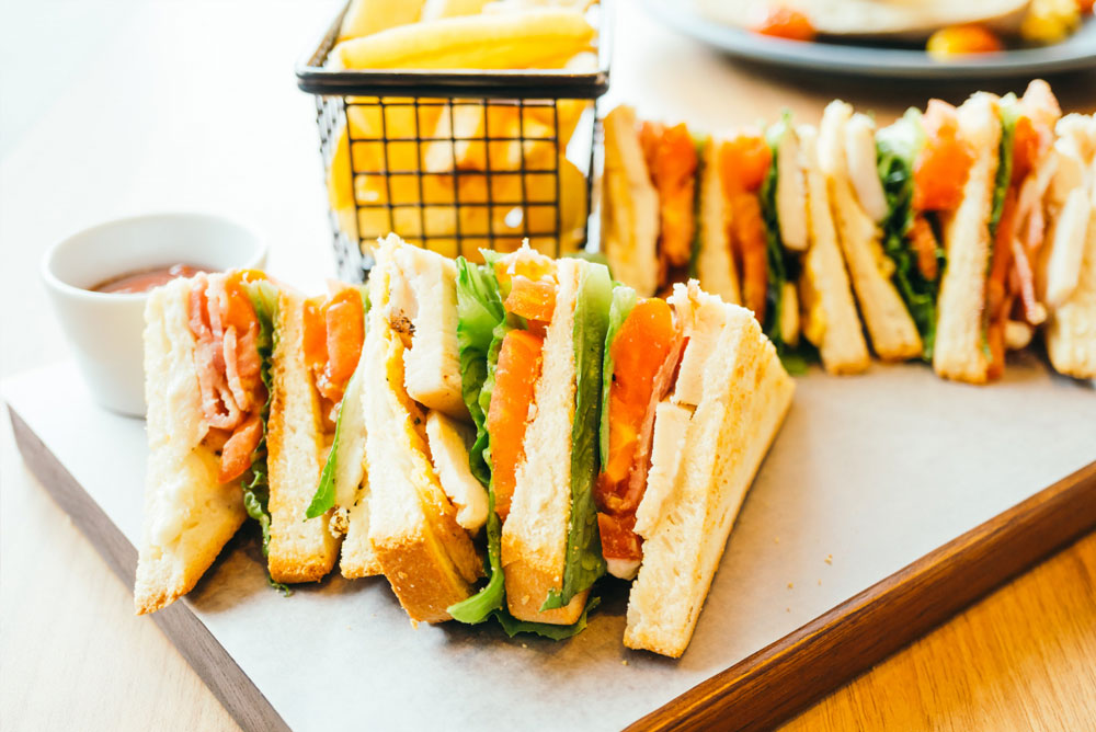 FORMULE PLAISIR ET HEALTHY : Mini-sandwichs (Poulet forestier, jambon cru/brie, jambon fromage, thon, saumon…), mini-viennoiseries sucrées et salées (pains choco, croissants, chaussons aux pommes, pains aux raisins, roulés saucisses, pizza, divers autres encas salés et sucrés… ) Fruits frais (Bananes, clémentines, pommes, raisins… (en fonction des arrivages et des saisons), jus de fruits, café, chocolat, thé.